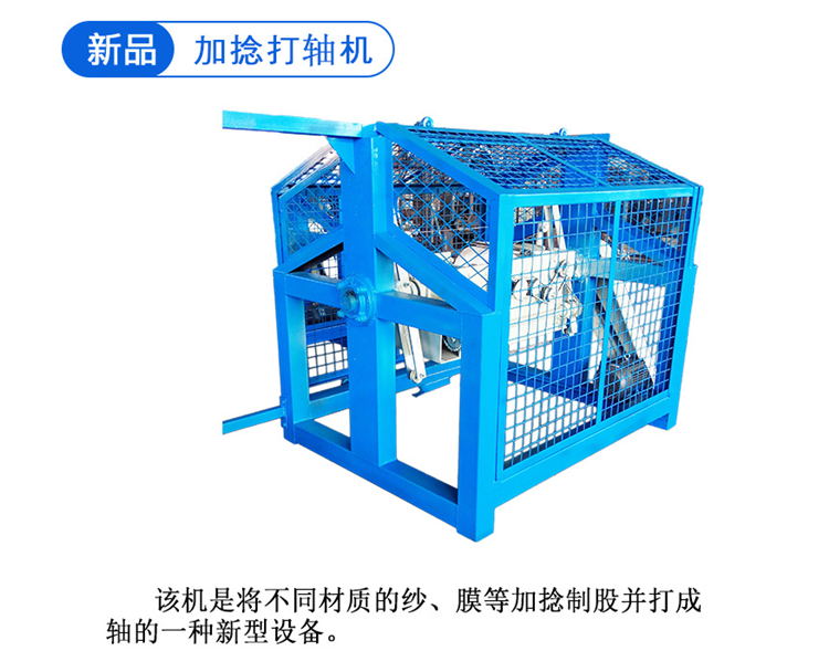 加捻打轴一体机是将不同材质的纱、膜等加捻制股并打成轴的一种新型设备。